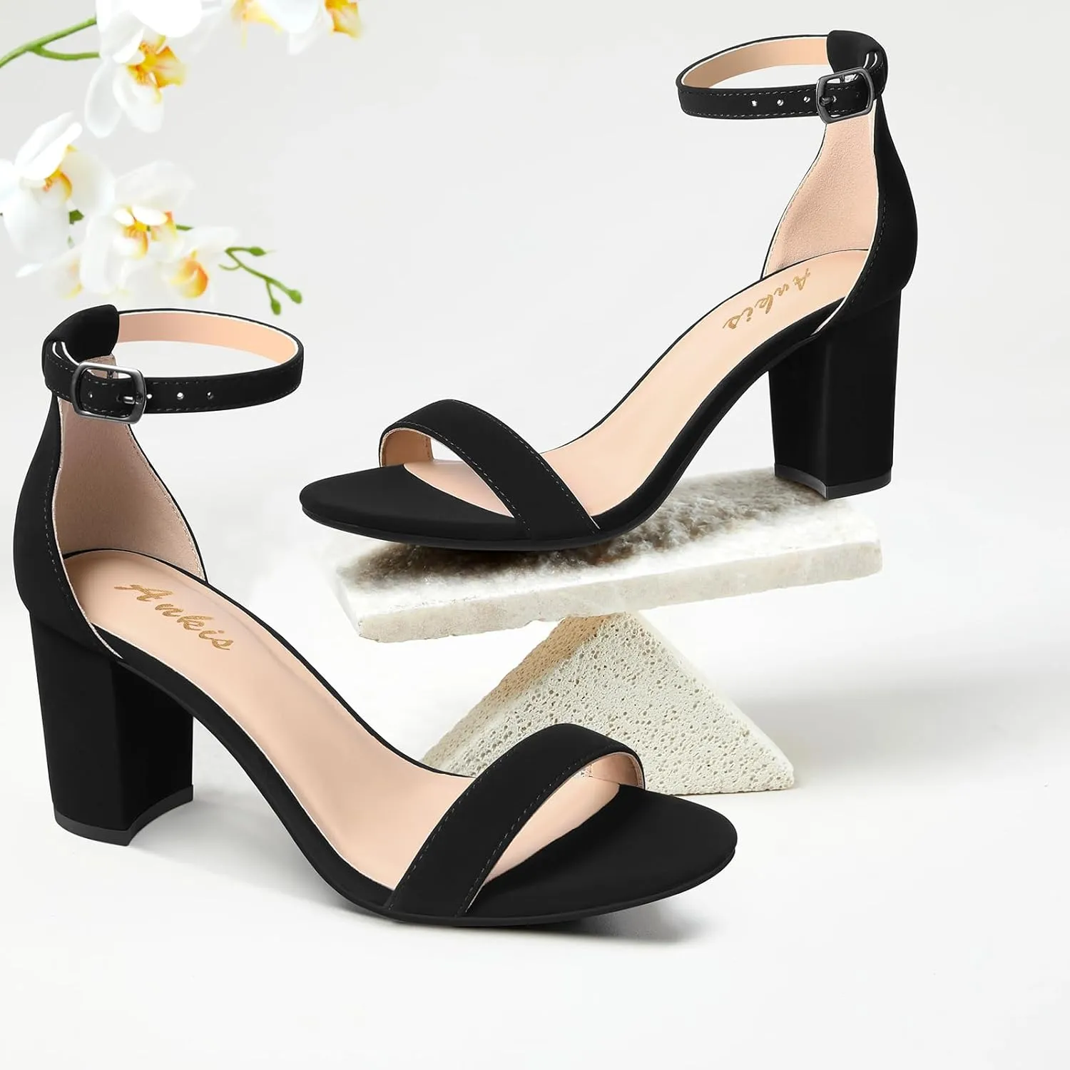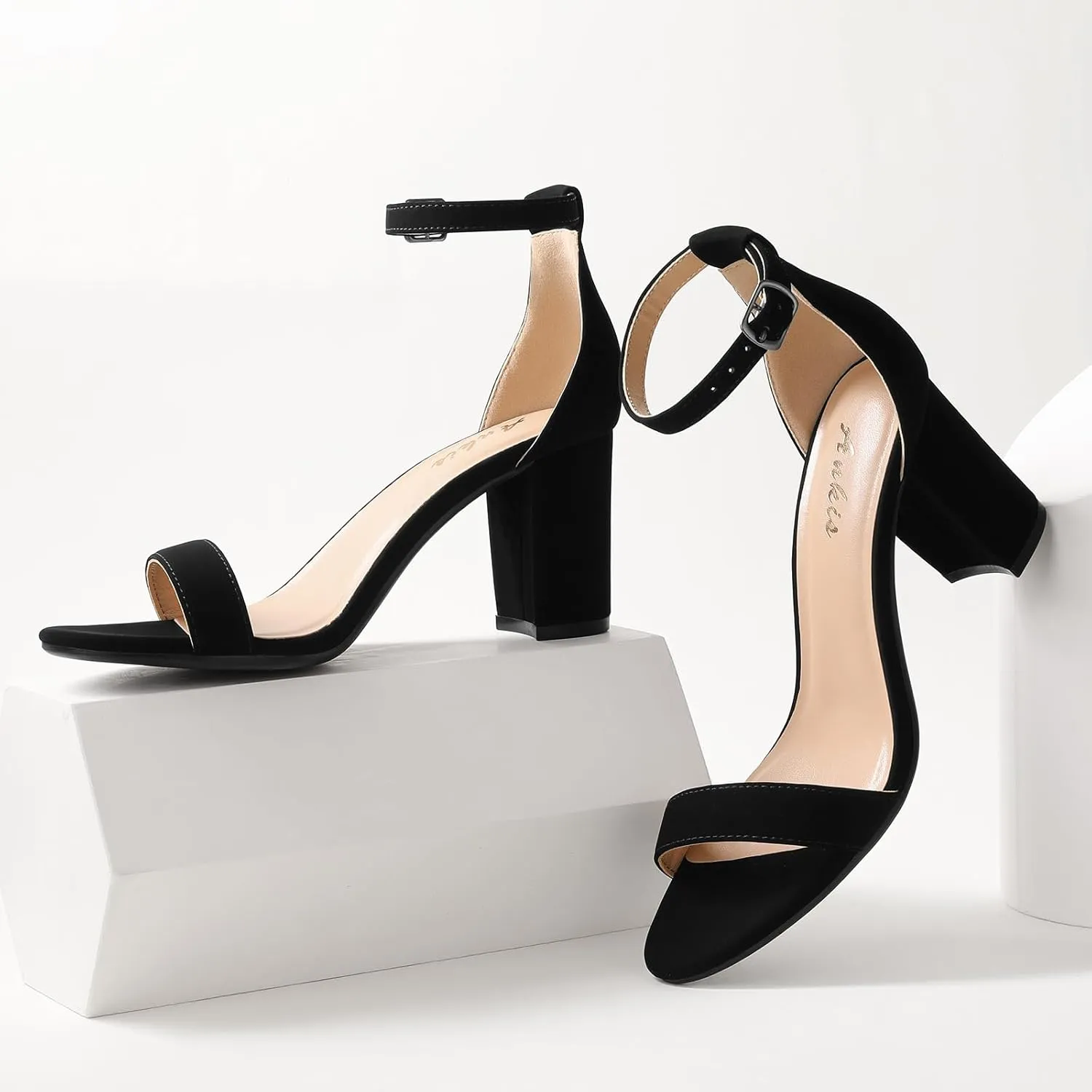 - Chunky heels: These black nubuck high heels have a classic thick heel design, comfortable latex insole and perfect heel height, bring you all-day comfort. The adjustable straps provide customized support for your ankles.