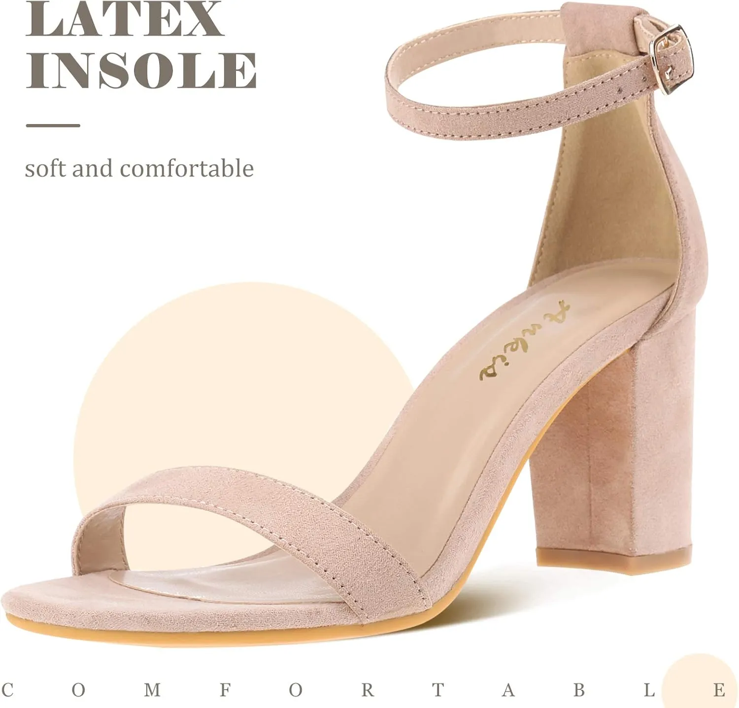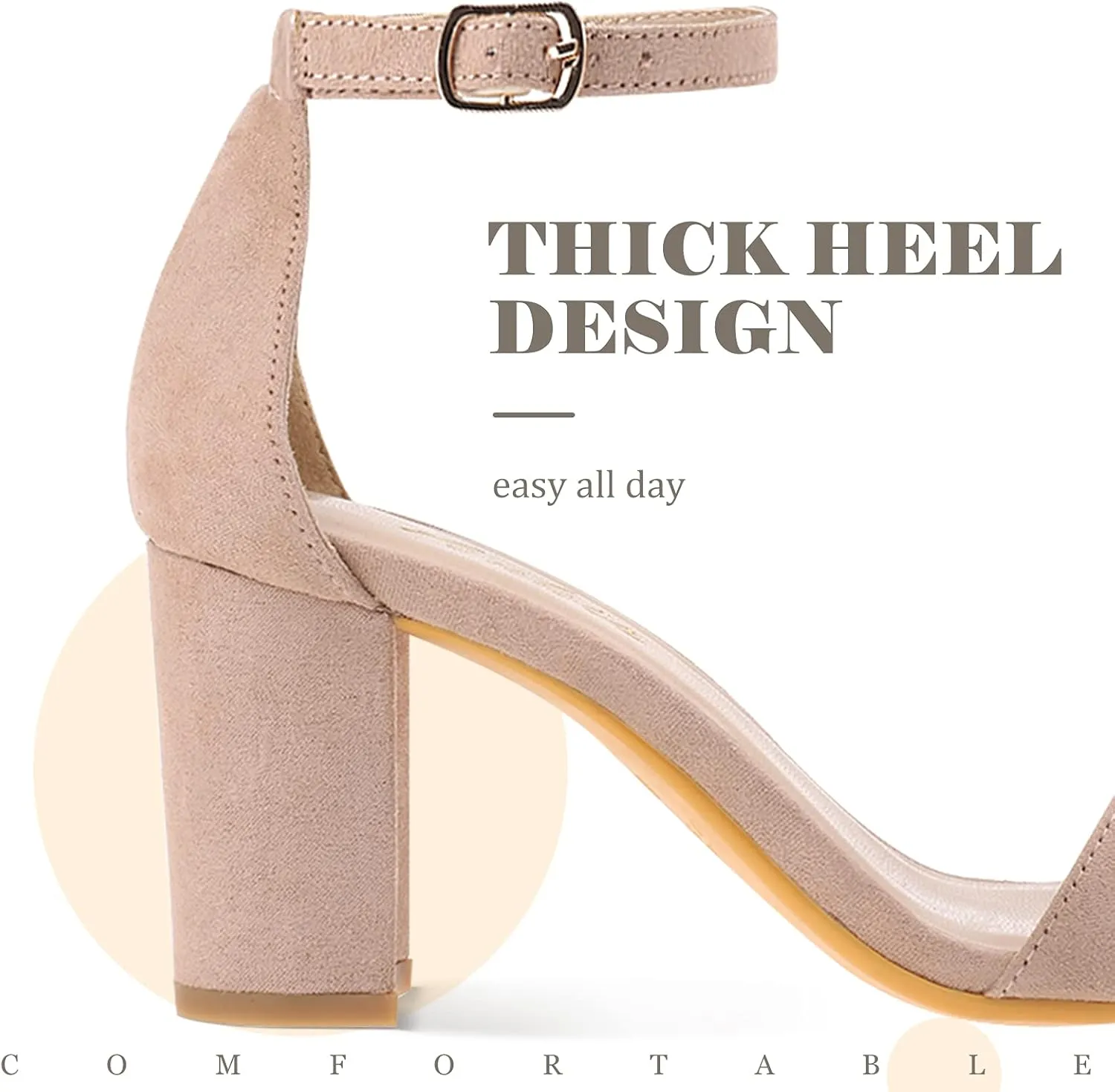 - Chunky heels: These nude high heels have a classic thick heel design, comfortable latex insole and perfect heel height will bring you all-day comfort. The adjustable straps provide customized support for your ankles.